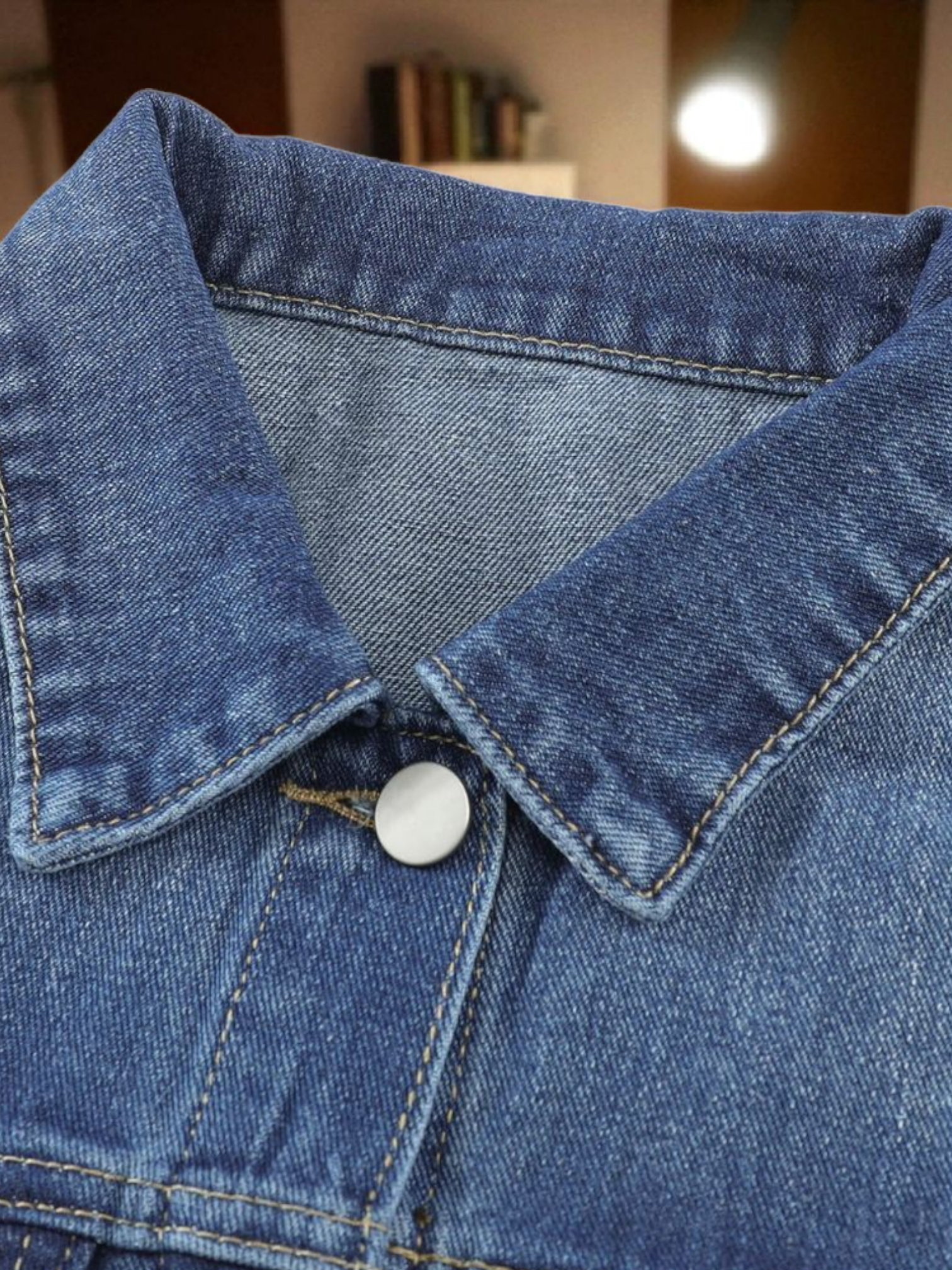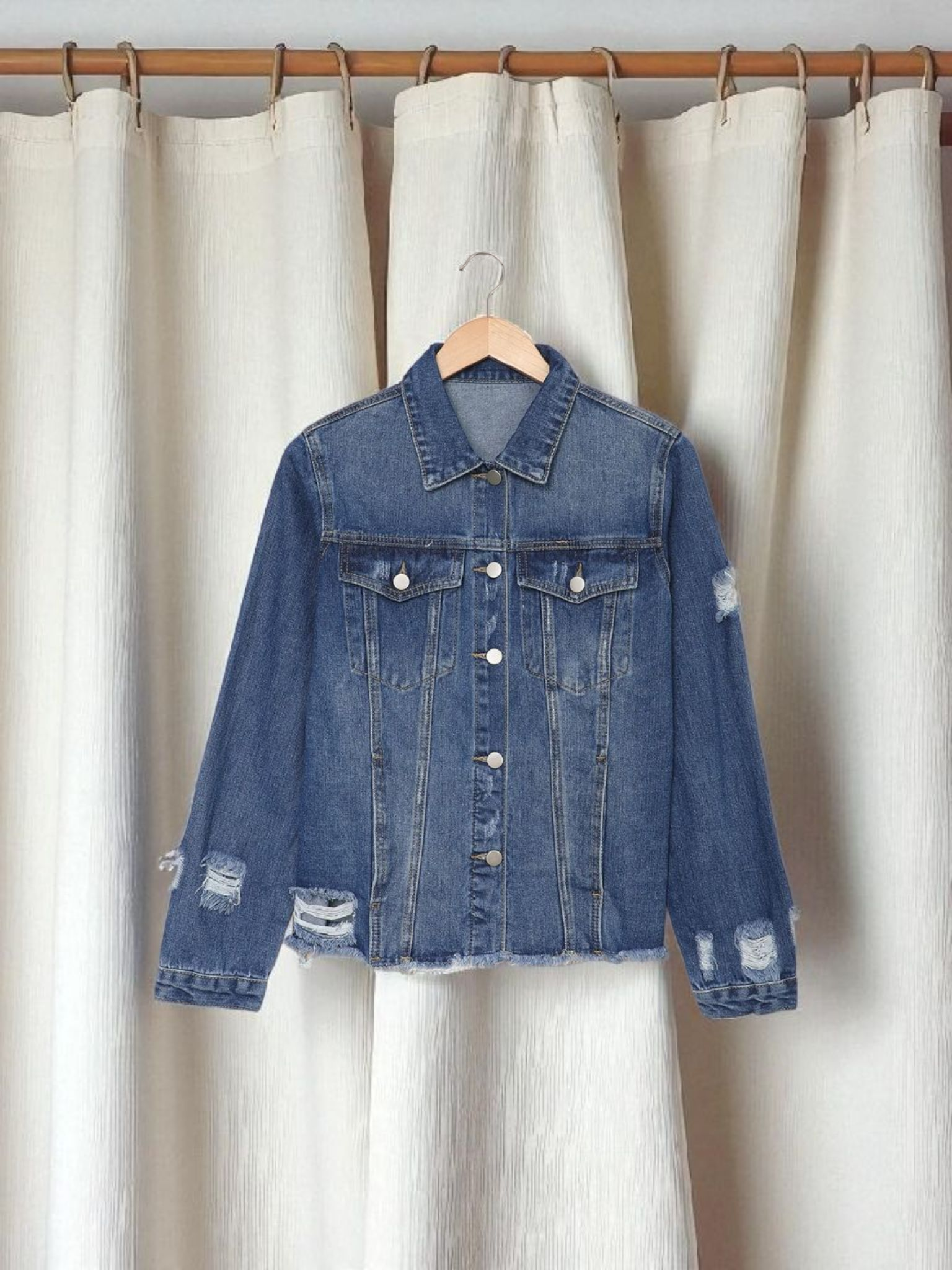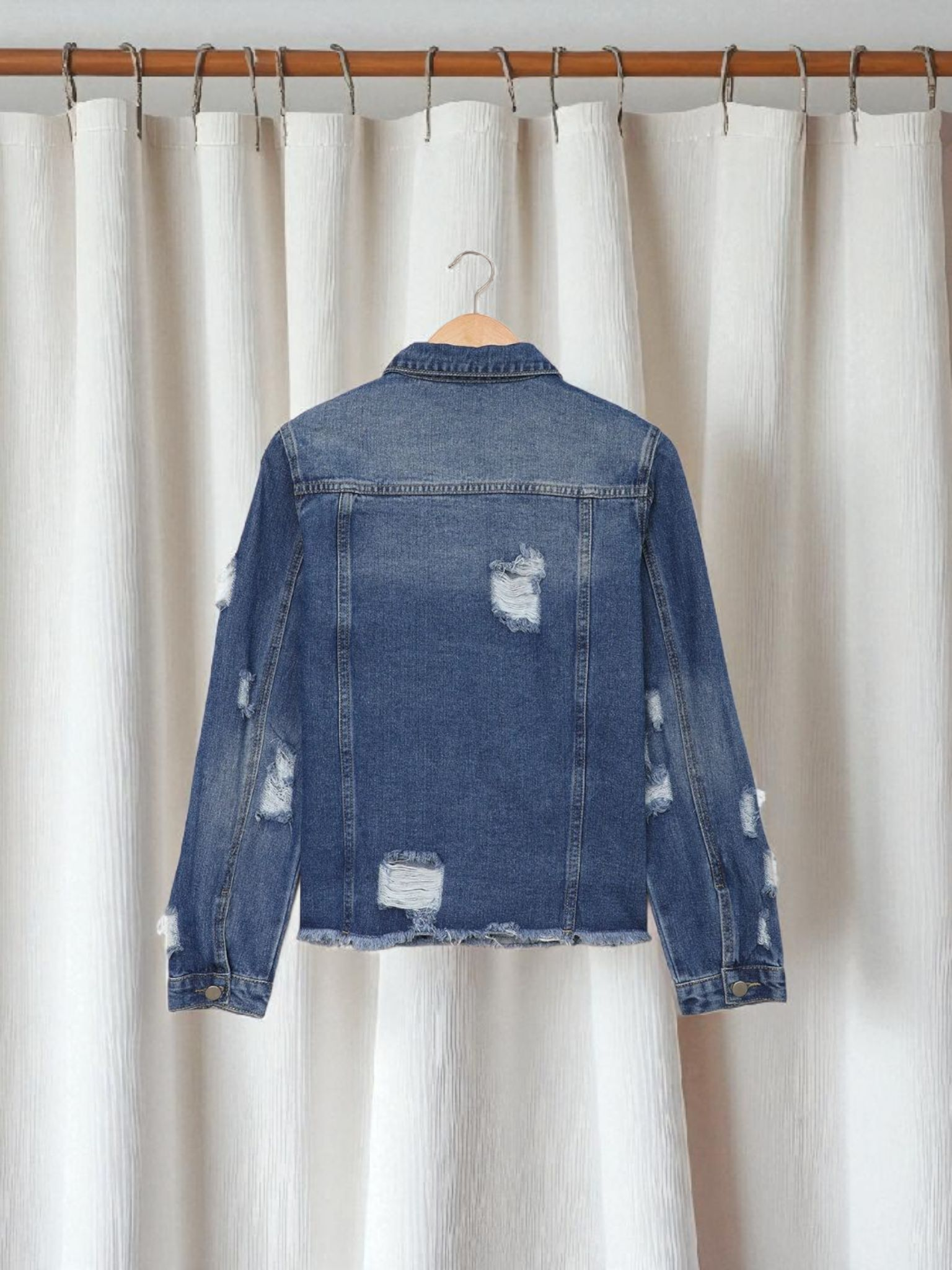 Introducing our Factory Faded and Distressed Denim Blue Jean Jacket. With its timeless button-down design, raw hem, and versatile pockets, this long sleeve jacket is the perfect addition to any wardrobe. Its factory faded and distressed denim adds a unique touch of style while providing a comfortable and durable fit.