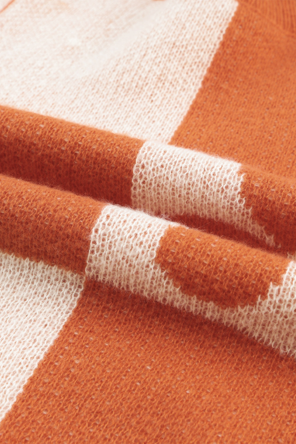 This Checkered Floral Print Sweater is warm and cozy and perfect for fall and winter. adorable, checkered design with large flowers and striped sleeves. Ribbed details on the neckline, cuffs, and bottom hem. relaxed oversized fit and made from high-quality materials.