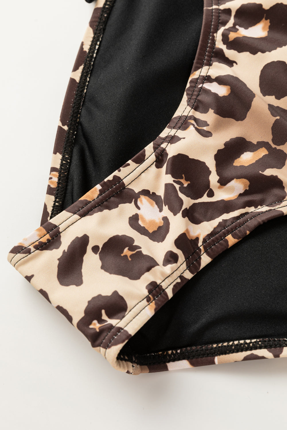 Two-piece Black and Leopard Print Tankini