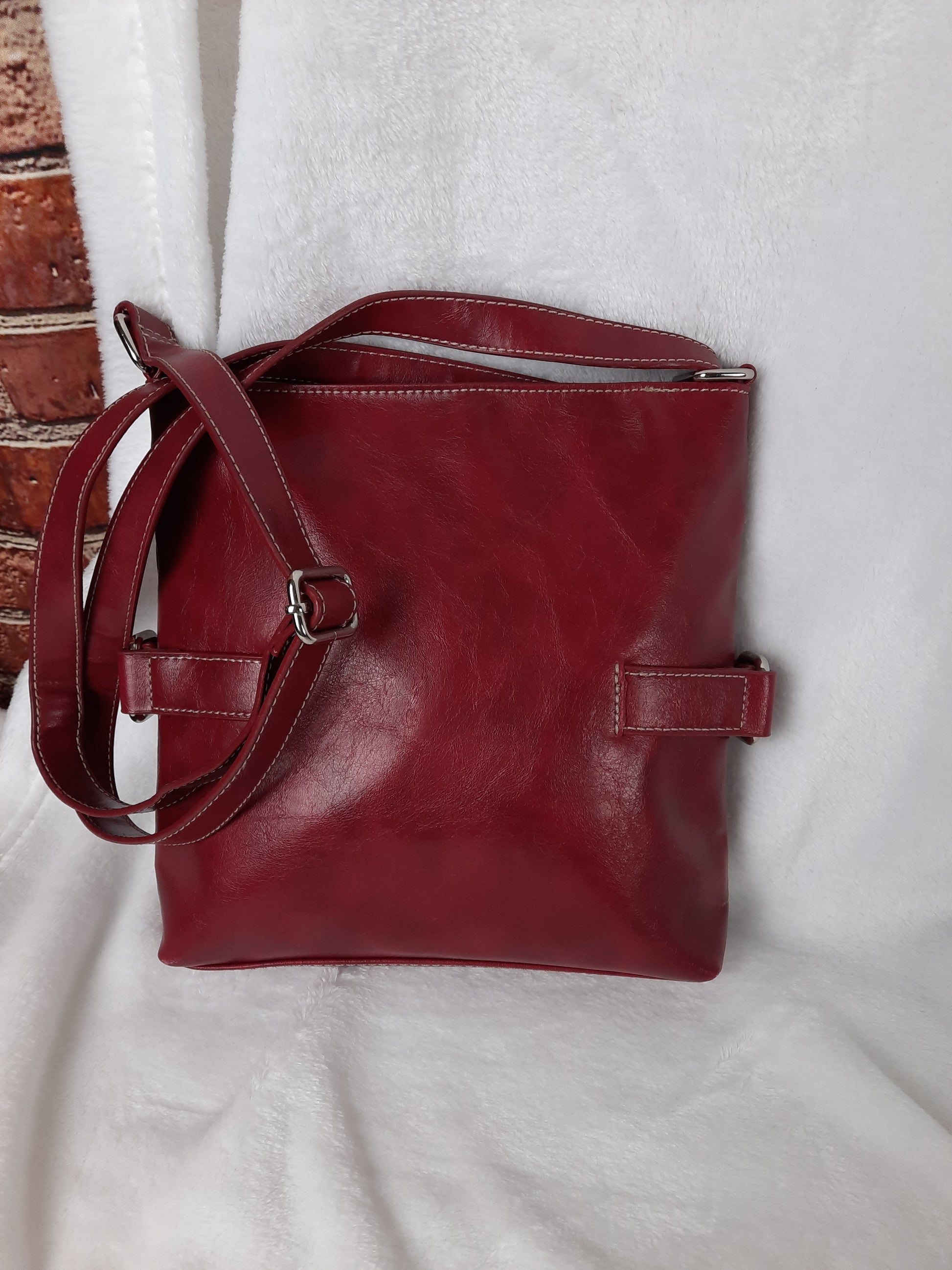 The Nine West Red FACTORY DISTRESSED Crossbody Bag is a stylish medium-sized handbag perfect for casual or party occasions. Made from faux leather with a matte finish, this rectangular shaped bag features a zip closure, red handle/strap, and silver hardware accents. It also includes inner and outer pockets, an adjustable strap, and is ideal for women looking for a versatile and trendy accessory to add to their collection. This bag offers a combination of western, designer, punk, classic, and city themes, making it a must-have for fashion-forward individuals.